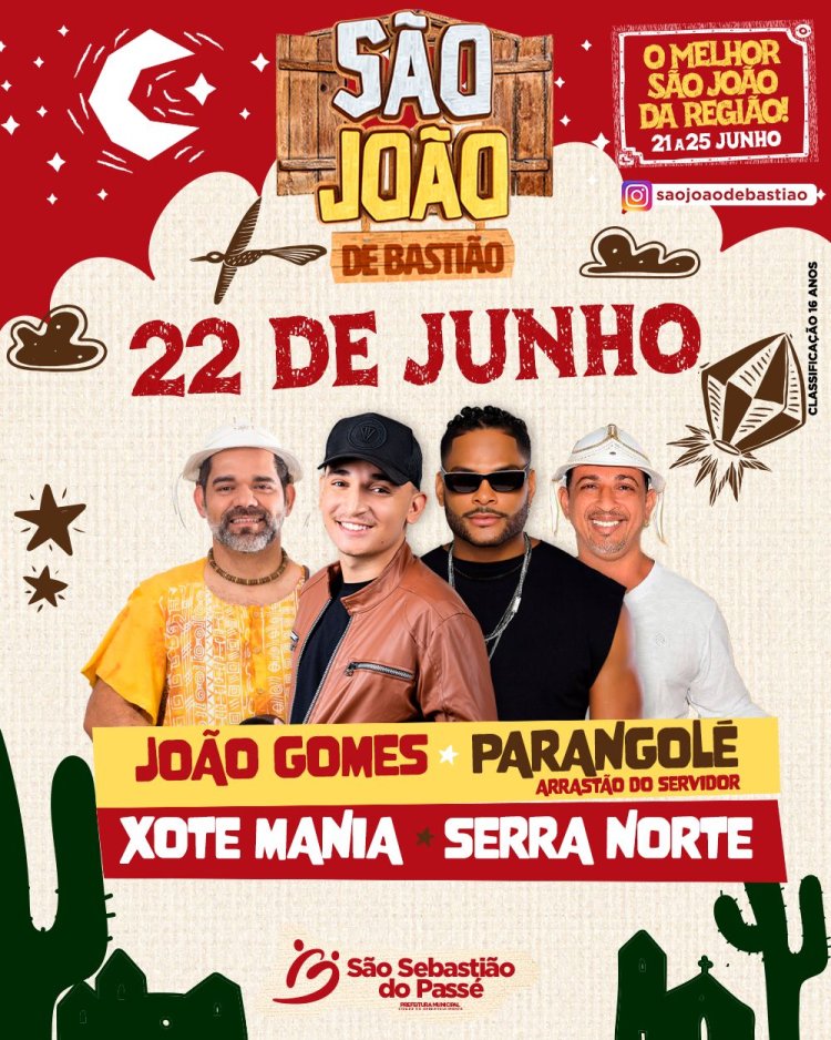 O São João de Bastião de 21 a 25 de Junho, jà tem programação diária do Palco que começa dia (22).