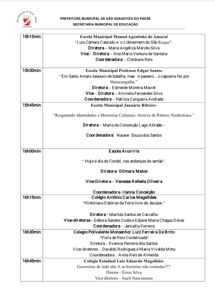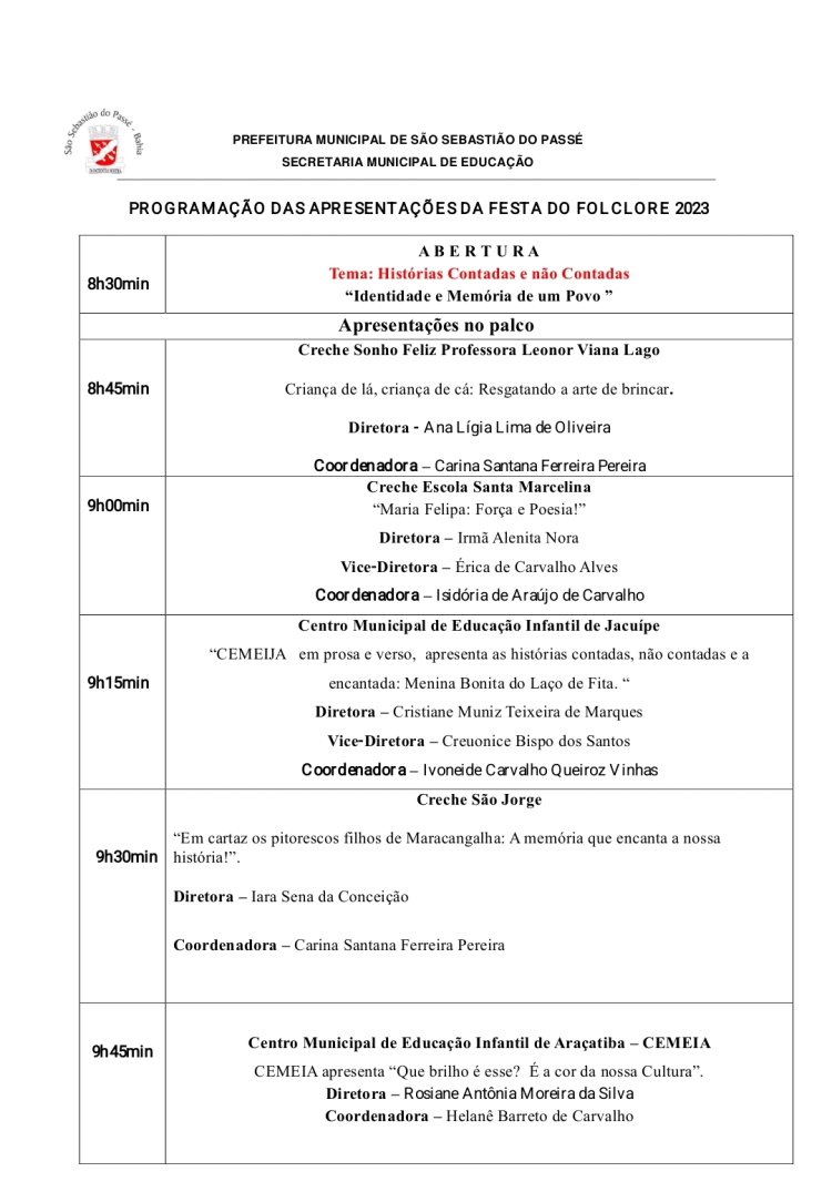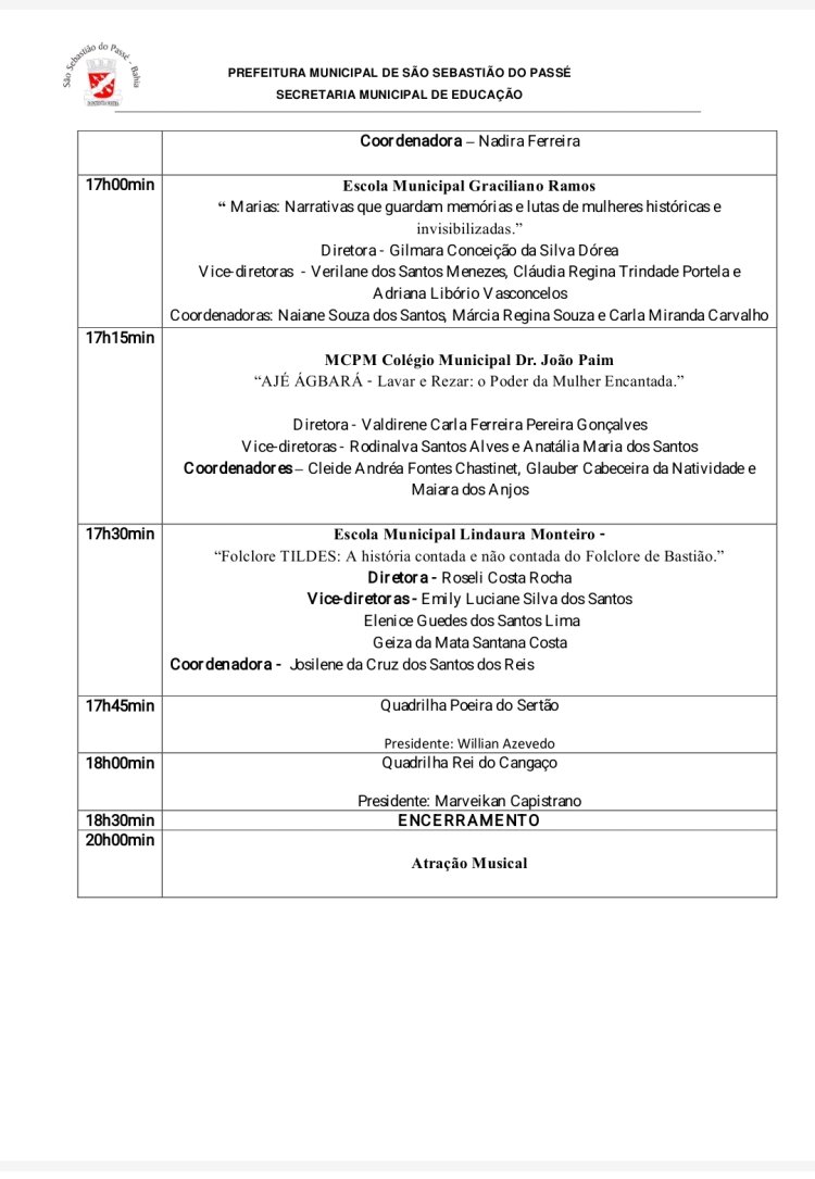 A expetativa de mais de 15 mil pessoas, durante o dia inteiro, assistindo os alunos e professoras dando um show e vai ter comida baiana no percurso da festa, veja a programação e o Decreto da prefeitura: